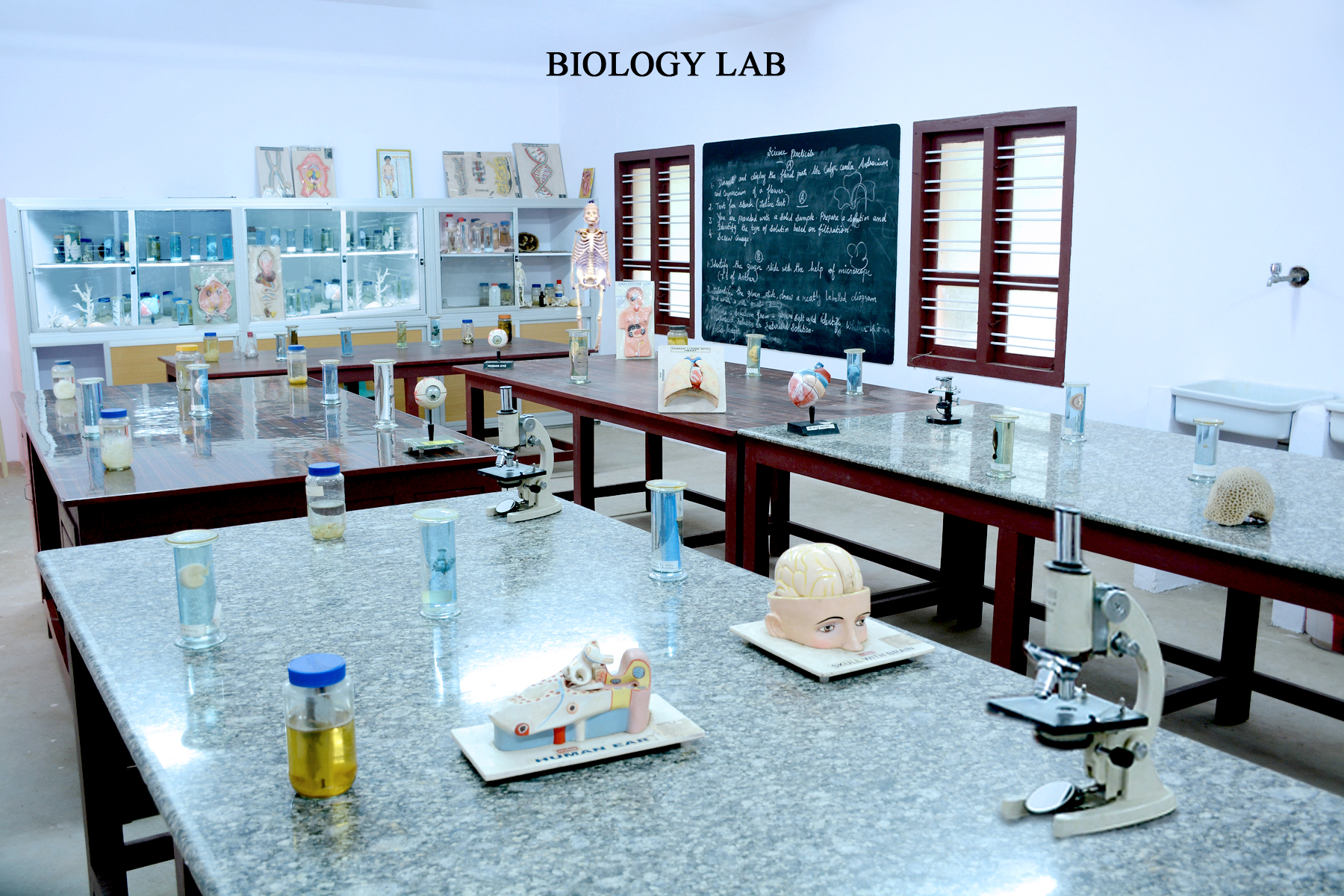 Skeletons, variety of plants, protected models, Red Blood cells, white blood cells and other things required are kept to enrich the knowledge in Botany and Zoology.